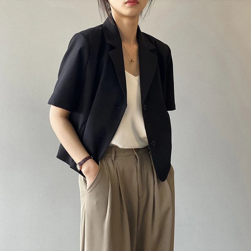 Women’s Short Sleeve Blazer – Elegant Single-Breasted Jacket